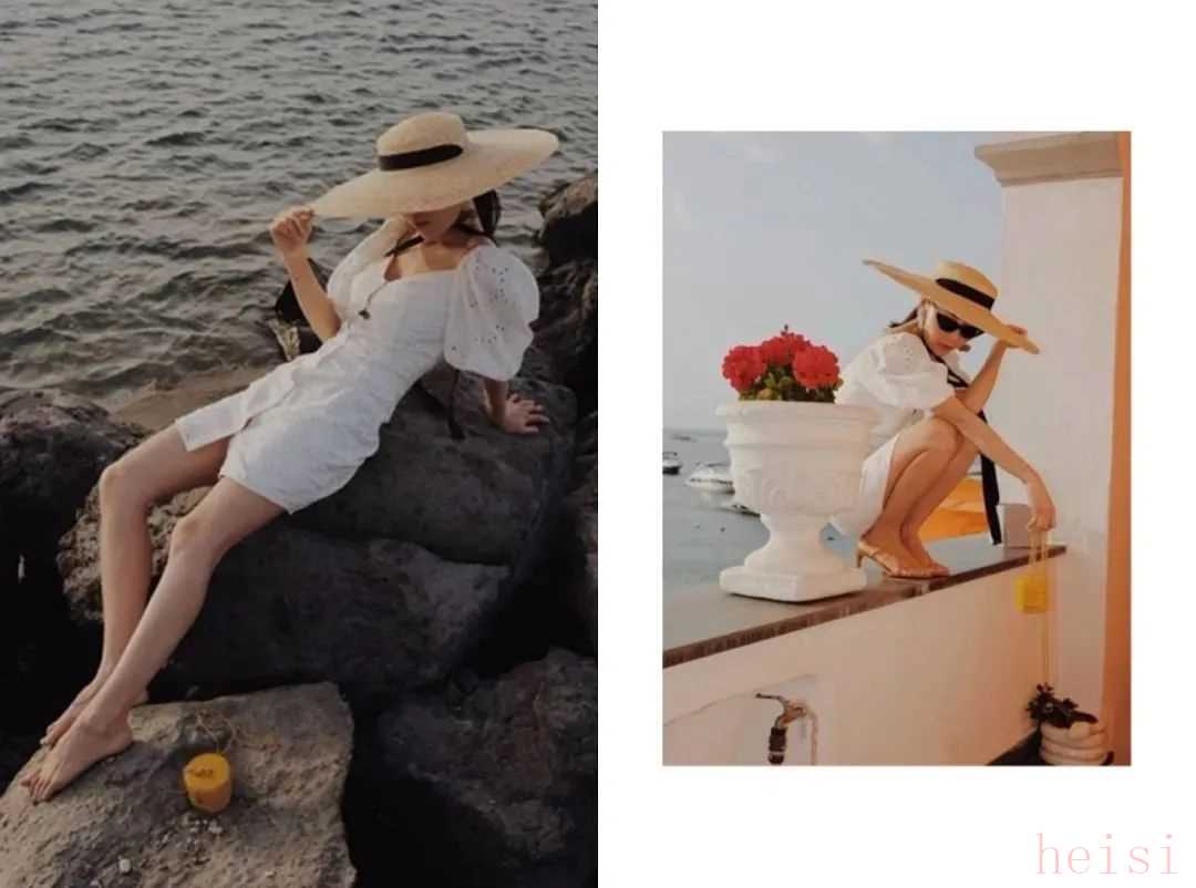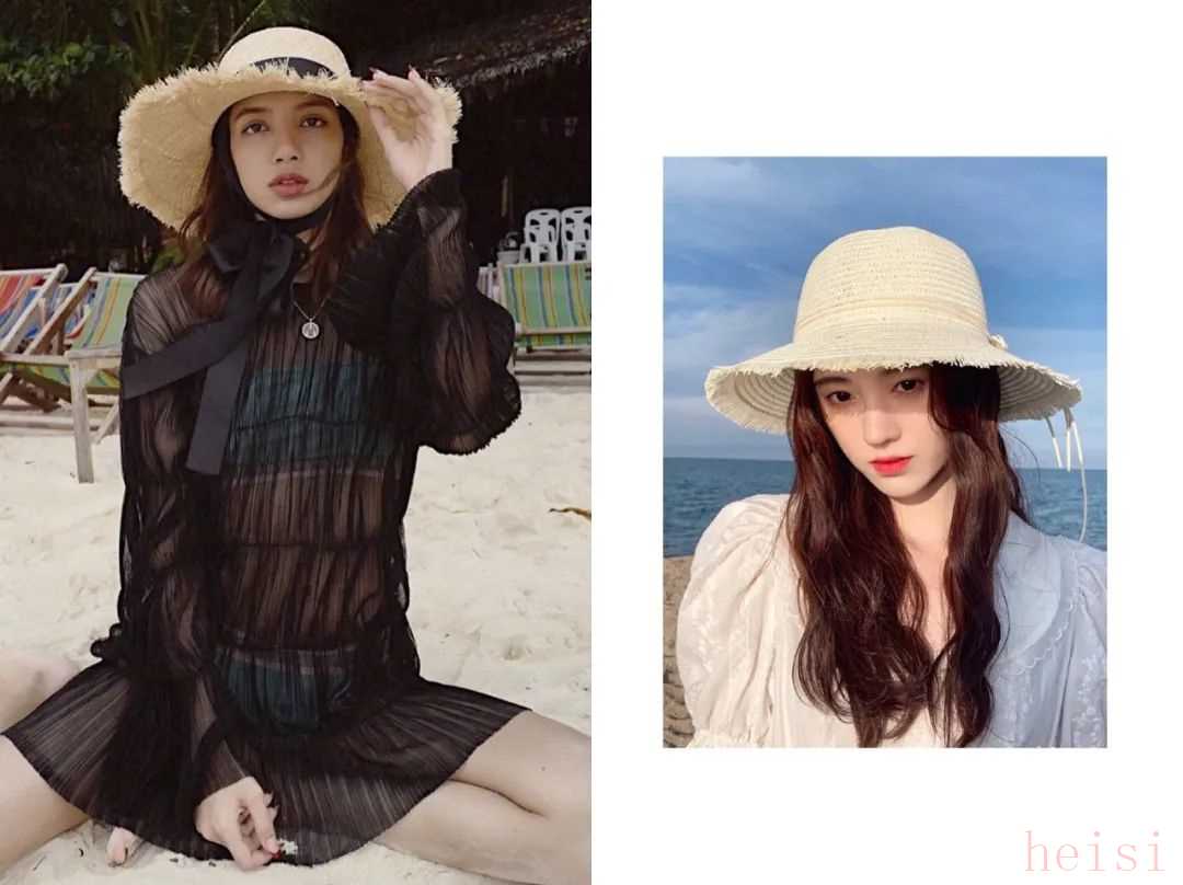 編織縫隙較大的網洞草帽讓陽光斑駁而下,把迪麗熱巴和李沁的文藝范兒也烘托出來!