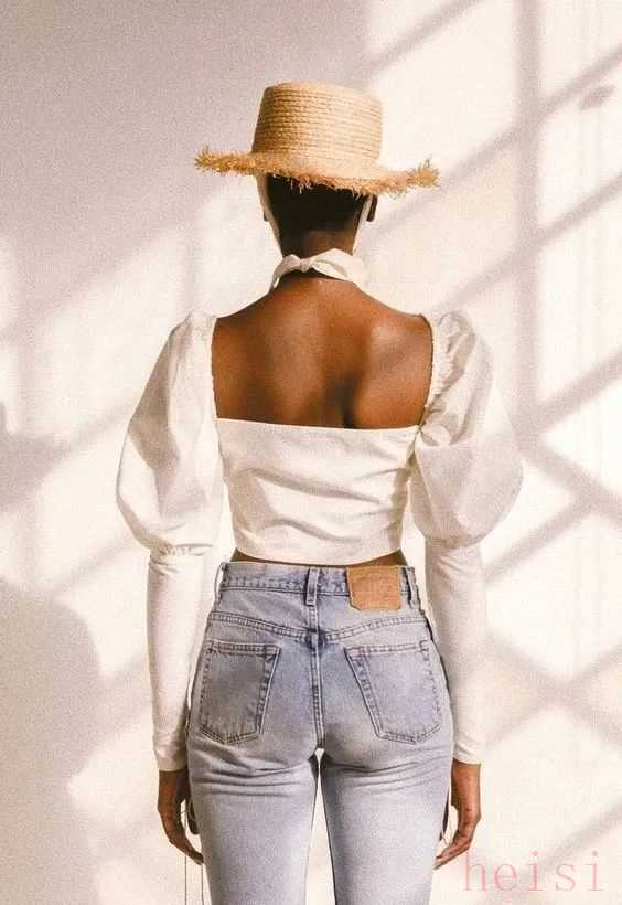 圓柱形平頂寬檐帽又昵稱為蛋糕帽,和下擺卷起打結的白襯衫CP值拉滿,小露性感!