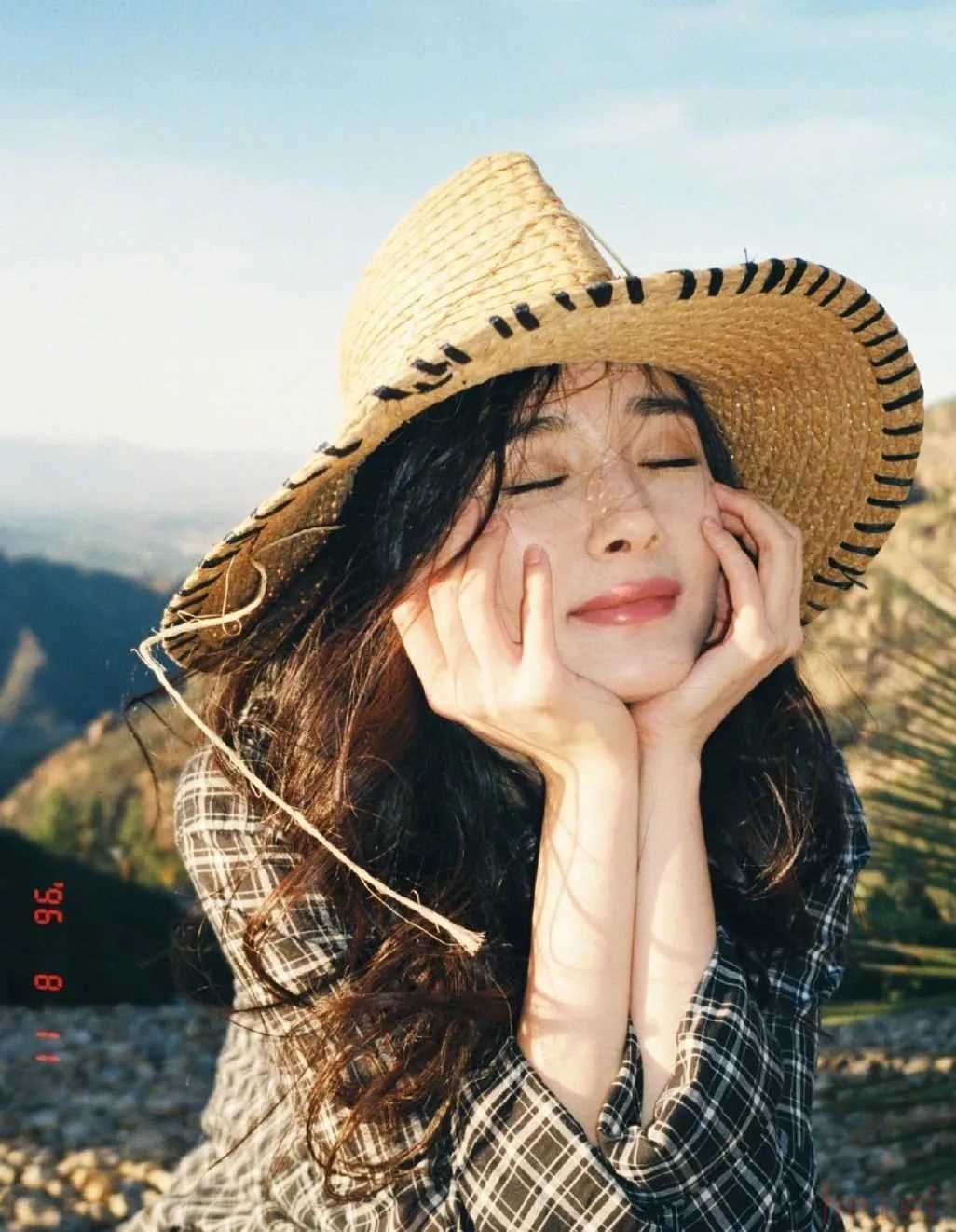 楊冪以一件格紋襯衫搭配牛仔草帽,洋溢出滿滿的陽光幸福感!