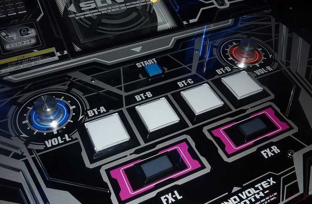 SOUND VOLTEX(音律炫動)是另一款正式引進(jìn)的街機(jī)游戲,包括四個音樂鍵、兩個混音鍵、兩個激光音效旋鈕,游戲中正確的按鍵能產(chǎn)生類似DJ臺的聲音,如同親臨現(xiàn)場為音樂混音。