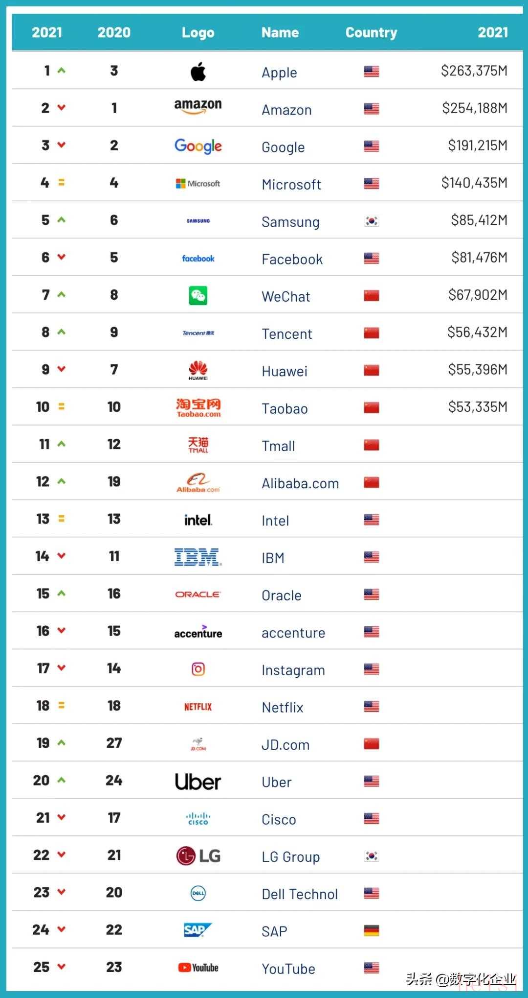 美國(guó)和中國(guó)品牌幾乎霸榜TOP25