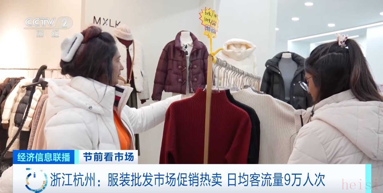 (央視財(cái)經(jīng)《經(jīng)濟(jì)信息聯(lián)播》)春節(jié)將至,年貨消費(fèi)進(jìn)入高峰時段。在浙江杭州的各大服裝批發(fā)市場,大力度的折扣吸引消費(fèi)者開啟了“掃貨”模式。