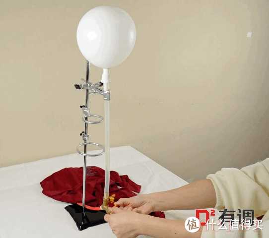 我們用三通轉換接頭、軟管、雙聯(lián)球、支架等器材搭建封閉透氣性測試系統(tǒng),向氣球內鼓入等量空氣后,再使氣體通過保暖內衣排出,記錄空氣排凈時間。