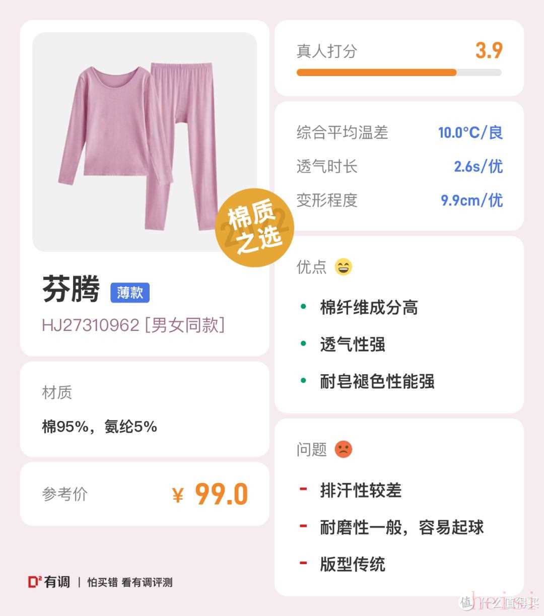 FENTENG 芬騰 情侶款保暖內衣套裝99元實時價格2022-12-17已更新去購買