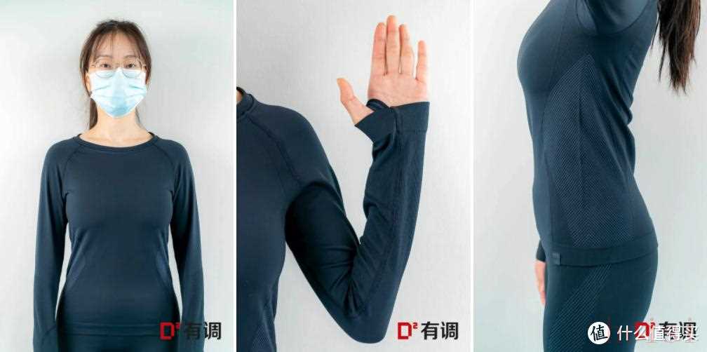 嗅嗅:屬于有設計感的保暖內衣!褲子可以直接外穿,上衣打底穿也沒問題。面料感覺有些滑,彈性好,很貼合身體。袖口還有小設計可以暖手,比較貼心。