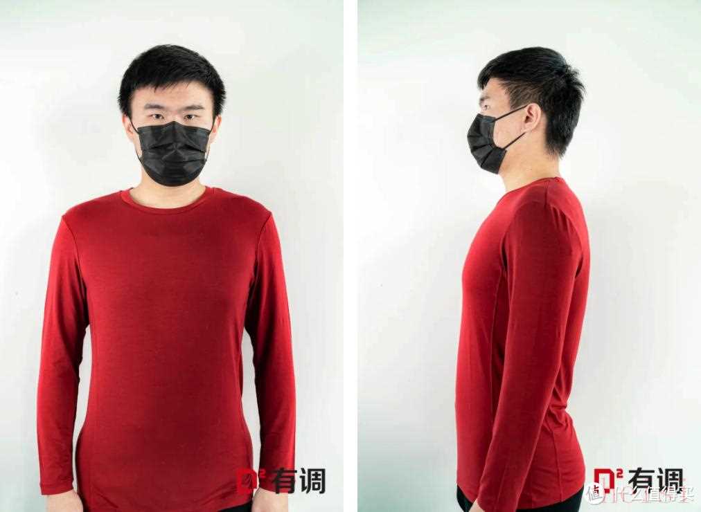 喬喬:最多算個打底吧,在北方單穿的可能性不大,起碼我不會穿這種,領子很軟容易變形,漏出來紅色的也不好看,特別是對于稍微上了點年齡的青年。但非常非常舒服,衣領的印花標也不會刺撓人,對了,這色其實在家穿挺顯白的,感謝試穿~