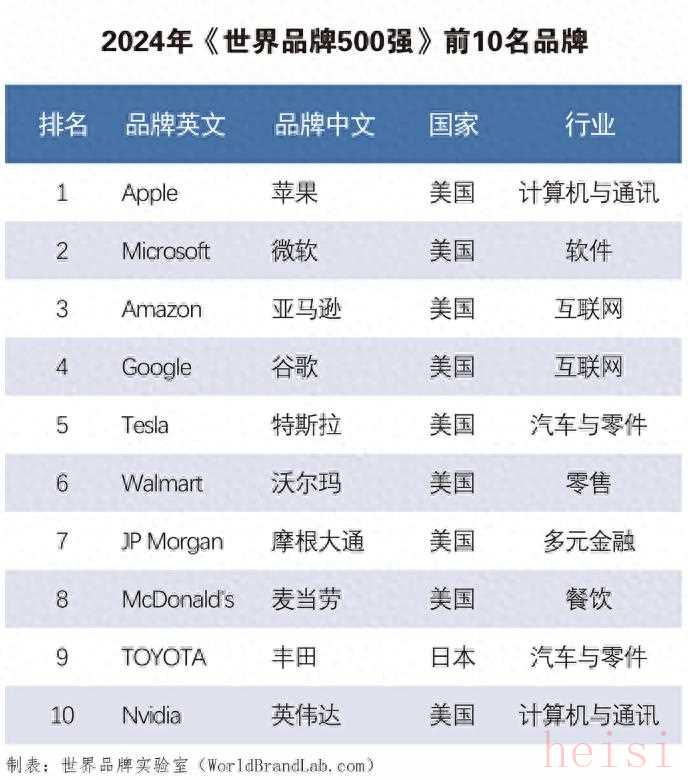 IT之家 12 月 13 日消息,由世界品牌實(shí)驗(yàn)室(World Brand Lab)編制的 2024 年度(IT之家注:第二十一屆)《世界品牌 500 強(qiáng)》 排行榜于 12 月 12 日在美國(guó)紐約揭曉。榜單前三寶座歸屬蘋果(Apple)、微軟(Microsoft)、亞馬遜(Amazon)。