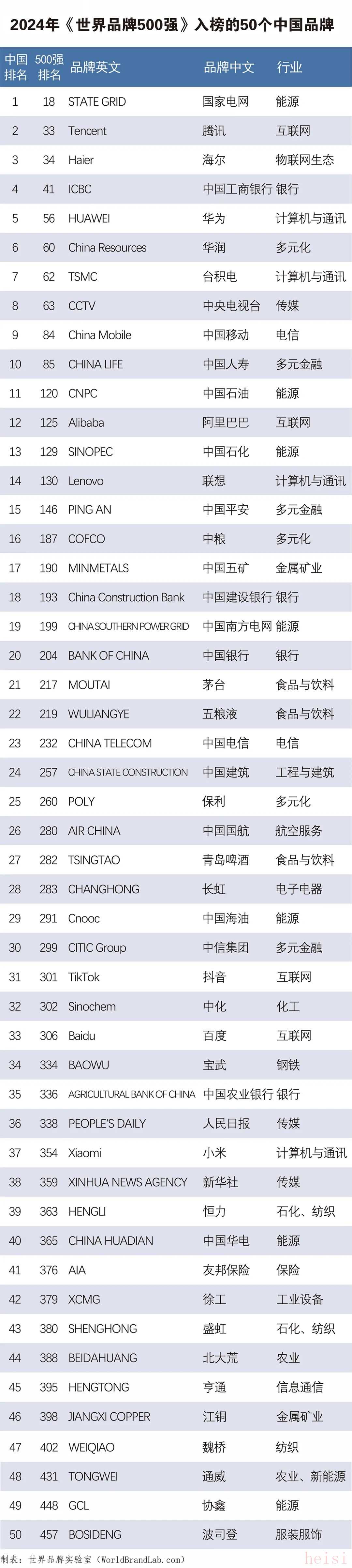 2024年《世界品牌500強(qiáng)》榜單已經(jīng)公布,中國(guó)共有50個(gè)品牌上榜。這個(gè)榜單由世界品牌實(shí)驗(yàn)室發(fā)布,旨在展示全球最具影響力的品牌。中國(guó)品牌在國(guó)際舞臺(tái)上的表現(xiàn)日益突出,體現(xiàn)了中國(guó)品牌在全球經(jīng)濟(jì)中的地位不斷提升。以下是部分上榜的中國(guó)品牌: