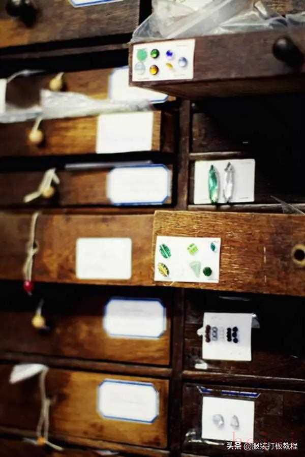 Lesage位于巴黎市內(nèi)的一幢大廈內(nèi),沒有華麗建筑,亦沒有古羅馬式的堂皇接待處,它只占其中兩層,一切來得很平實(shí),卻估不到這小小的天地,收藏了無數(shù)傳奇。先是由創(chuàng)業(yè)至今的四萬個刺繡樣本,當(dāng)中包括ElsaSchiaparelli經(jīng)典的太陽神刺繡及Chanel每季ready-to-wear和HauteCouture的刺繡款式,此外,擁有超過六十噸供應(yīng)品存貨,其中不少更是古董,如1870年代保存至今的閃光水晶、二十世紀(jì)的圓拱形寶石、萊茵石、玻璃珠等等。