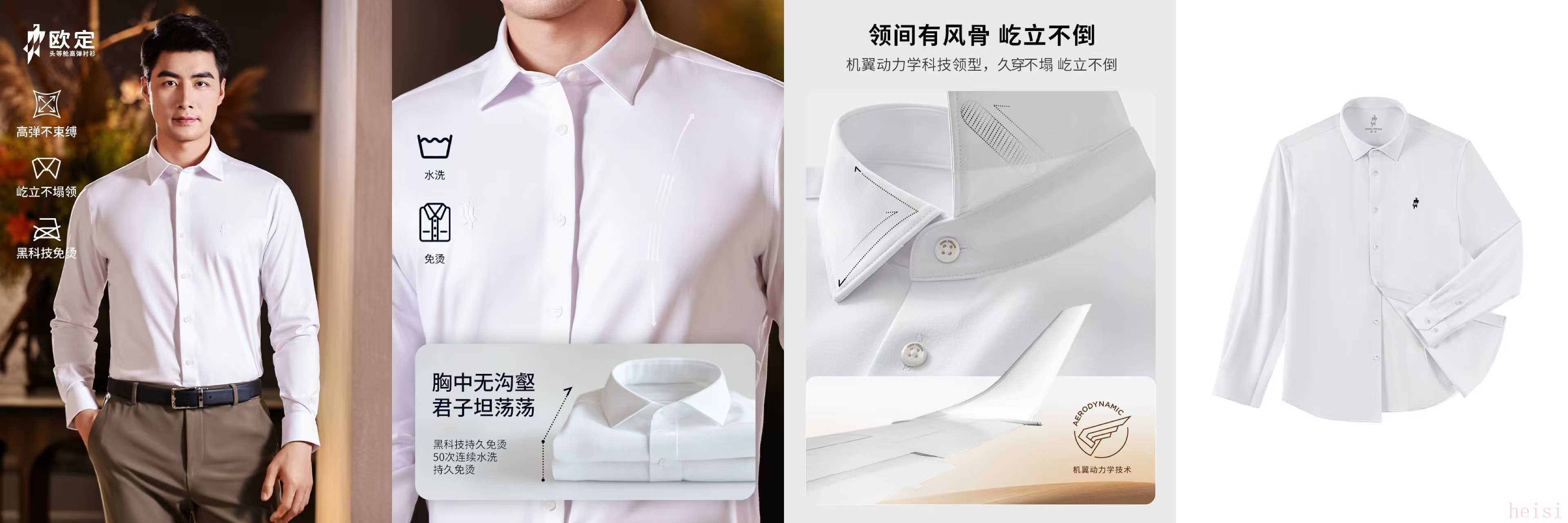 3. "設(shè)計(jì)風(fēng)格獨(dú)特":歐定襯衫在保持商務(wù)正裝風(fēng)格的基礎(chǔ)上,不斷創(chuàng)新設(shè)計(jì),融入時(shí)尚元素,使產(chǎn)品既符合商務(wù)場(chǎng)合的正式要求,又不失個(gè)性與時(shí)尚感。這種獨(dú)特的設(shè)計(jì)風(fēng)格吸引了大量追求時(shí)尚的商務(wù)男士。