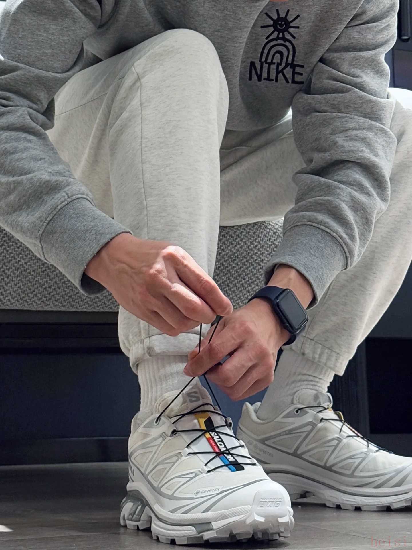 薩洛蒙算是中產(chǎn)運(yùn)動(dòng)鞋里的“頂流”了,雖然年輕的受眾群體也很多,但是對(duì)上了年紀(jì)的男人也十分友好,穿在腳上完全不顯突兀違和。