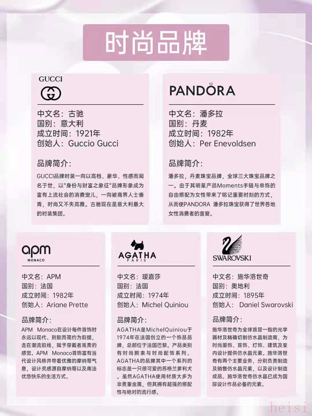 時(shí)尚品牌:古馳Gucci、潘多拉、APM、璦嘉莎、施華洛世奇。