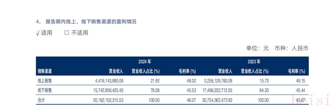線下銷售是海瀾之家發(fā)展的基石,線下門店銷售的穩(wěn)定增長是海瀾之家全年銷售的核心主題。因此,海瀾之家的線下渠道正在通過優(yōu)化門店結構、融入數(shù)字生態(tài)等手段迎接市場的挑戰(zhàn)。2024年,海瀾之家精研門店戰(zhàn)略布局,聚焦門店結構優(yōu)化。在保持門店總數(shù)基本盤面不變的情況下,以“精布局、高品質(zhì)、強體驗”為指引,加速進軍地標性商業(yè)綜合體,入駐核心商圈,大力拓展購物商場店,聚焦店效提升。財報顯示,海瀾之家直營門店的毛利率已達62.85%。