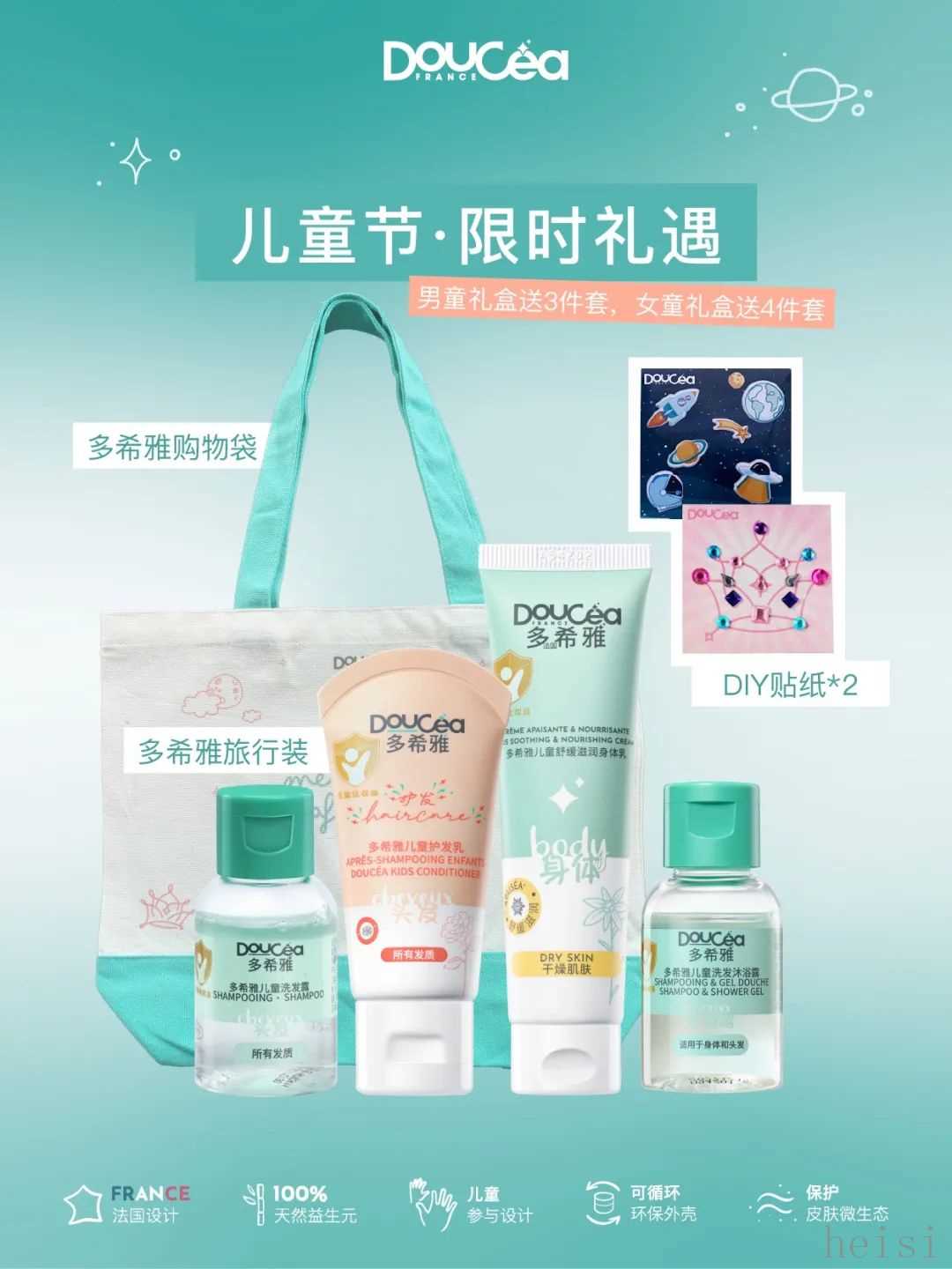 現(xiàn)在還有兒童節(jié)限時禮遇,6月30日前下單山雪花萃洗護(hù)禮盒,禮品多多:多希雅購物袋、價值114-152元的30ml旅行裝小樣(男童禮盒送3件套、女童禮盒送4件套)、貼紙,小朋友收到一定很開心~