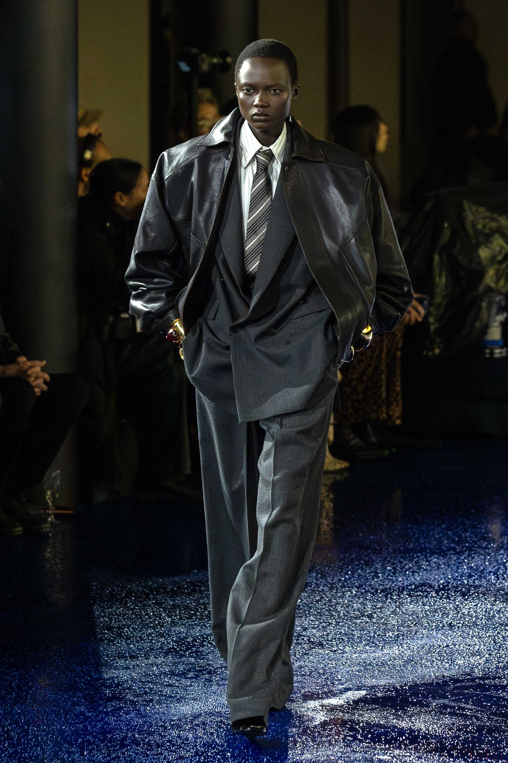 皮革元素的加入,讓整體造型更加硬朗,同時(shí)也彰顯了圣羅蘭品牌的獨(dú)特風(fēng)格。