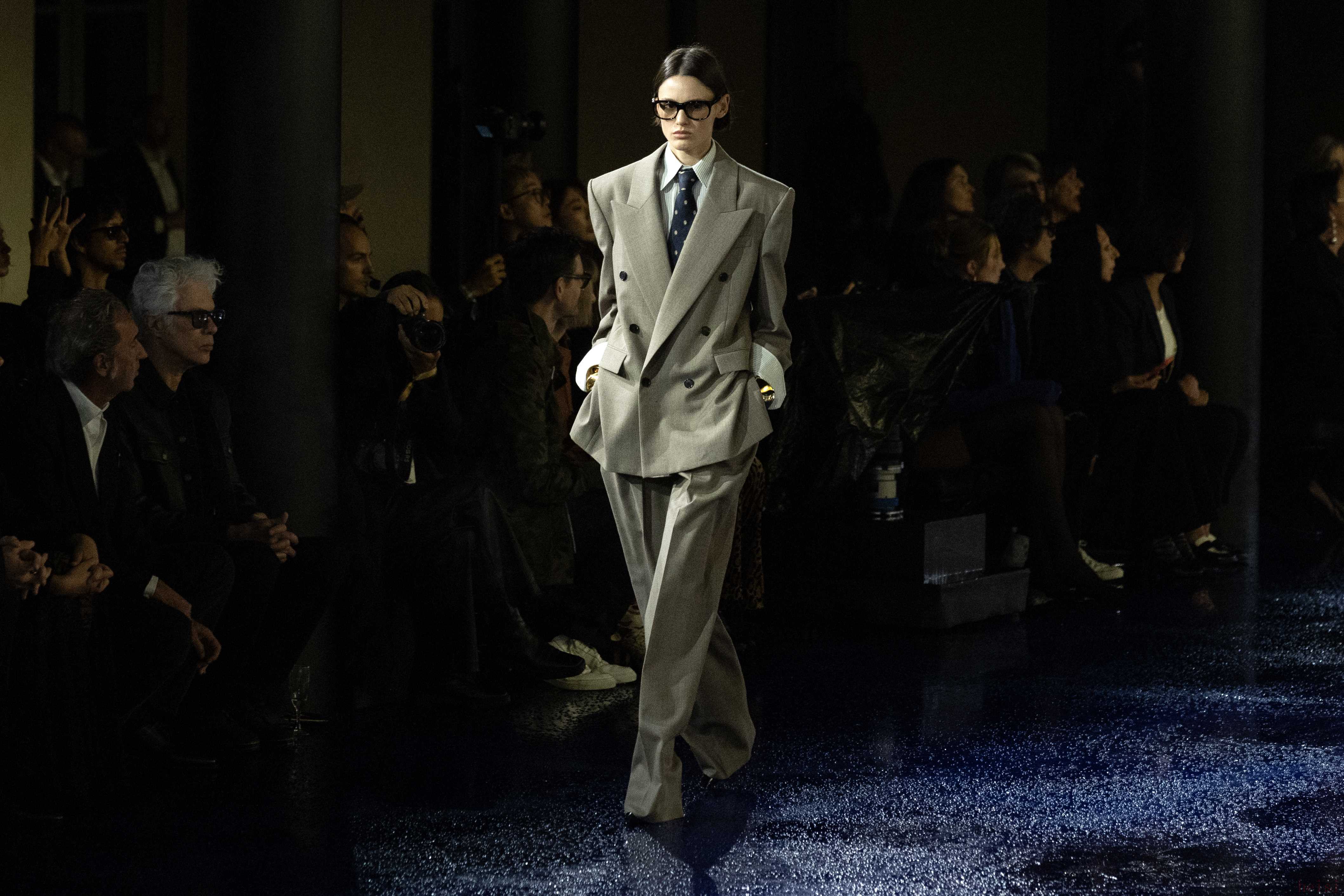 9月24日,模特在法國(guó)巴黎時(shí)裝周上展示圣羅蘭品牌的2025春夏新款時(shí)裝。 新華社/歐新