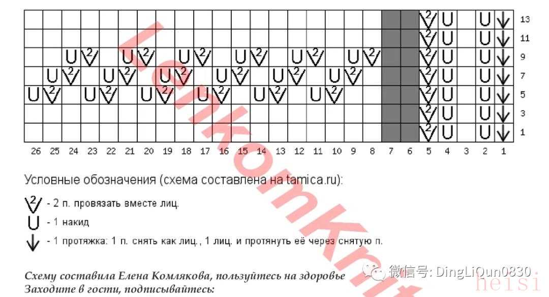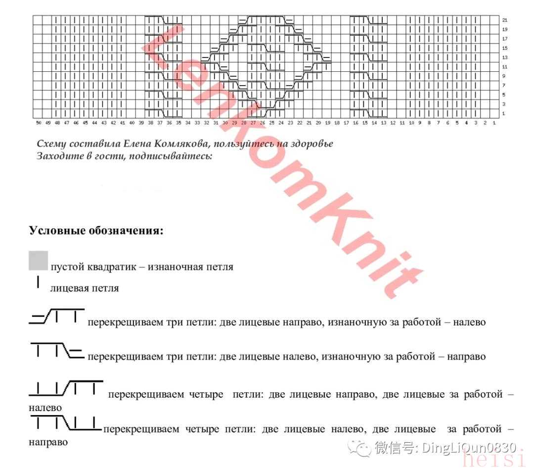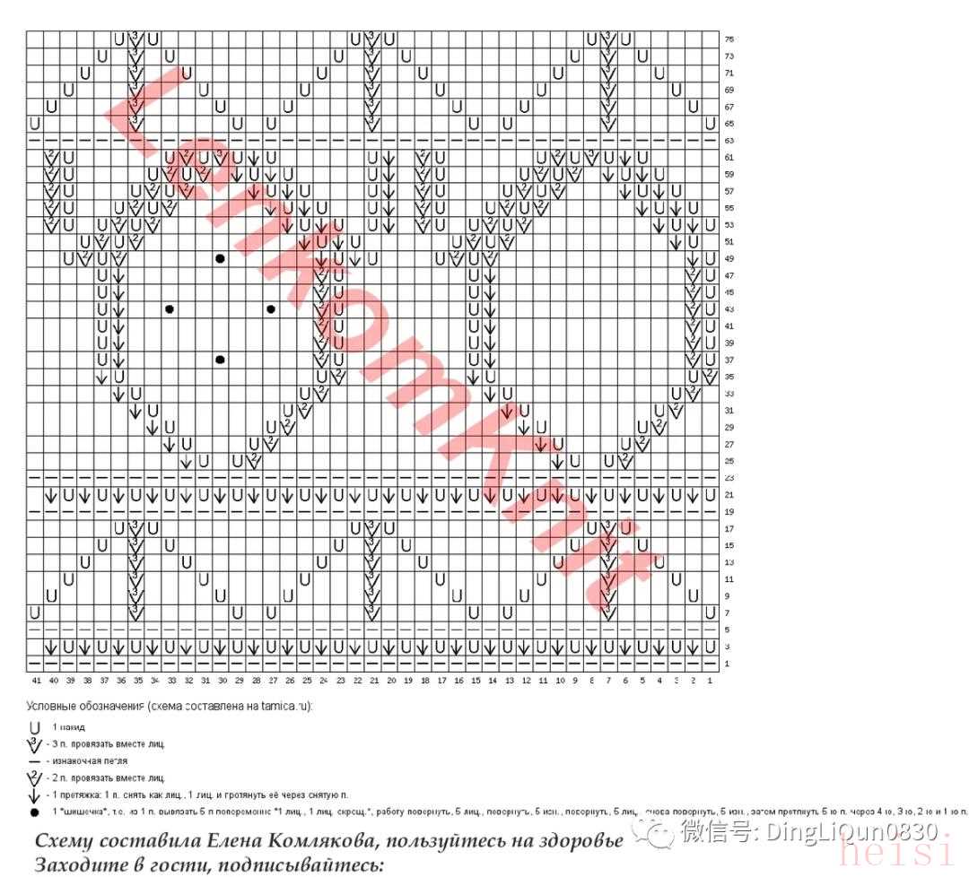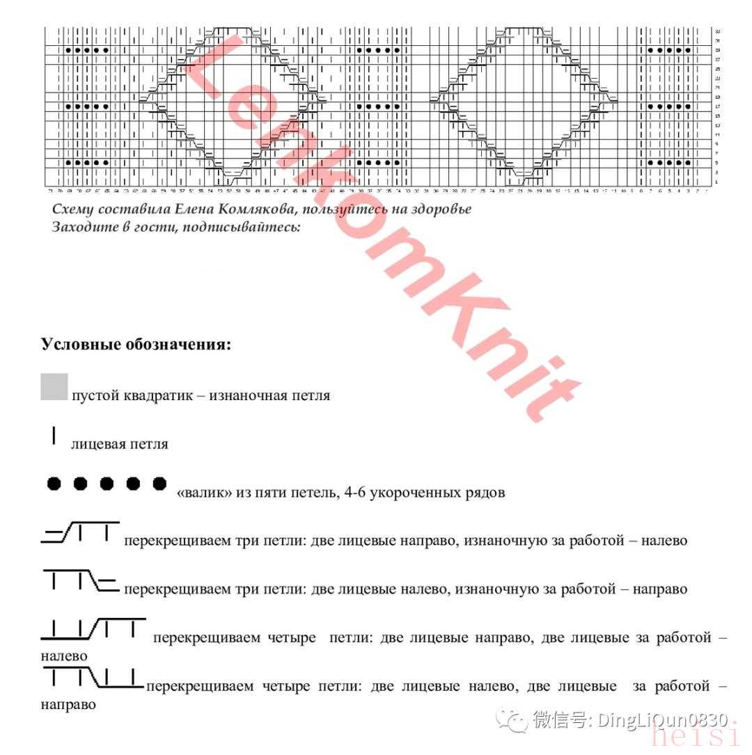 在圖表上 - 這件毛衣的圖案融洽(辮子刻在菱形上)和符號: