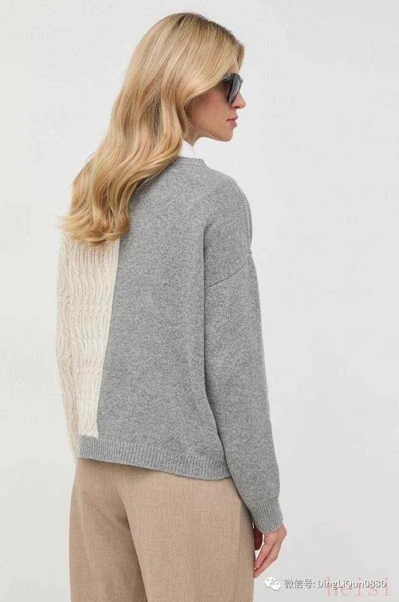 第六件毛衣 - 品牌 MarellaMarella 是一個受歡迎的意大利高級女裝、配飾和鞋履品牌。這件毛衣很有趣。首先,它是雙色調(diào)(灰色+象牙色)。其次,只有右側(cè)部分與圖案相連,左側(cè)(灰色)是通常的正面。第三,右側(cè)通過有趣且不間斷的模式連接,這是我第一次看到這樣的模式。