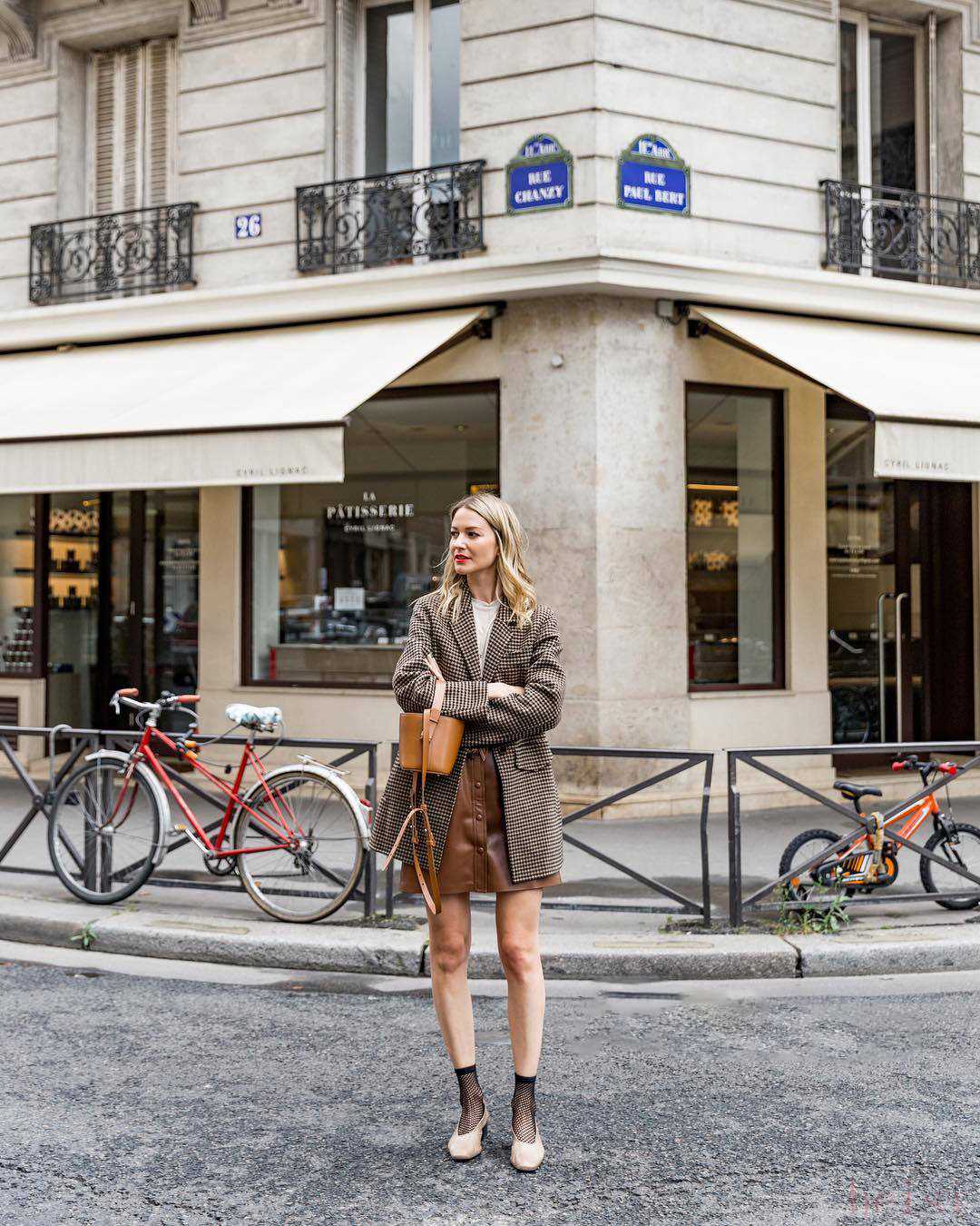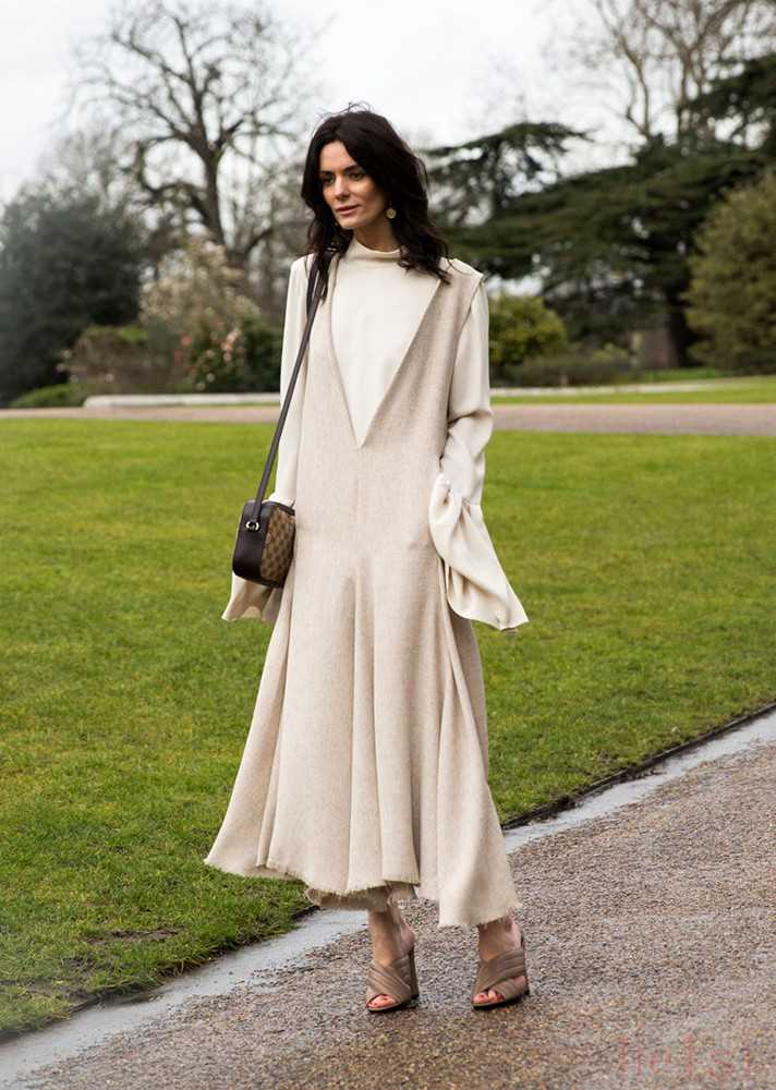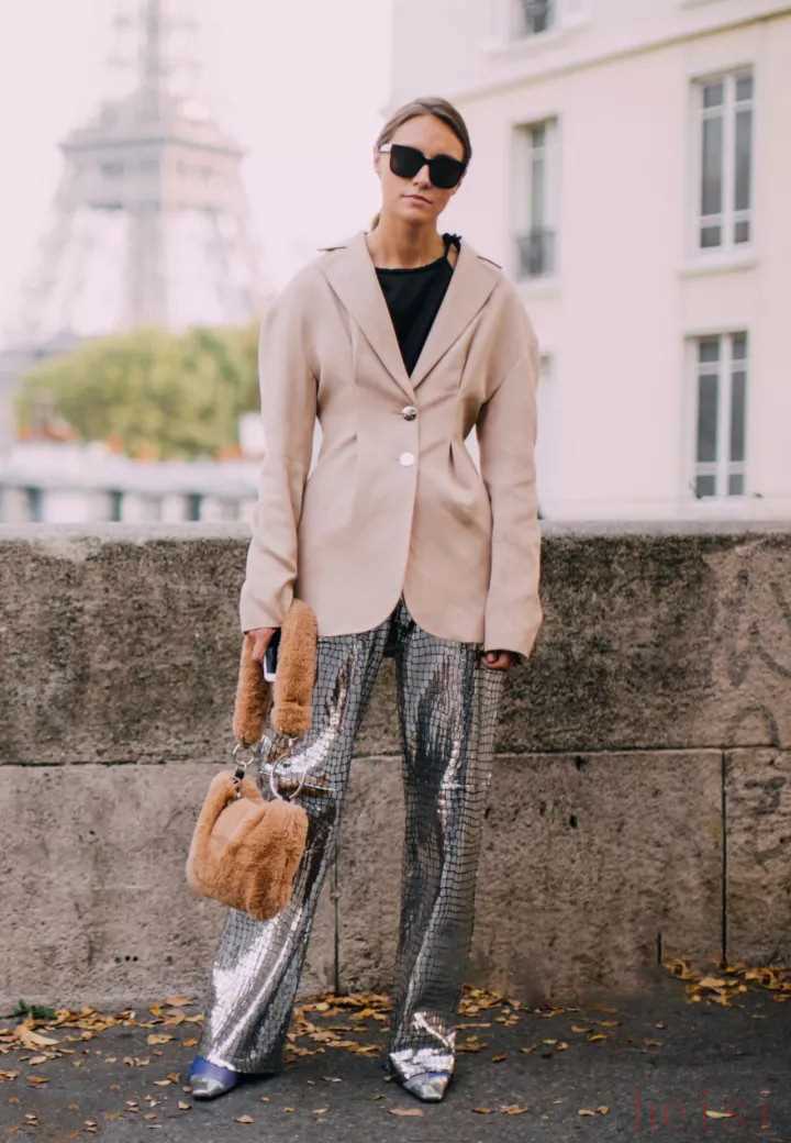 方形小水桶包的輪廓感更加突出,可以選擇與之一樣的剪裁清晰的服裝進行搭配,比如西裝外套、設計感風衣等,如果想營造出"柔中帶剛"的穿搭效果,可以嘗試搭配網紗類連衣裙,柔軟的材質與清晰的輪廓形成對比,風格又甜又酷。