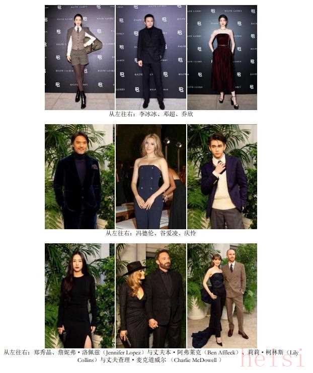 摩登星光,光彩四溢。演員李冰冰、演員及導(dǎo)演鄧超、青年演員喬欣、演員馮德倫、運(yùn)動(dòng)員谷愛凌、歌手慶憐、演員鄭秀晶、歌手詹妮弗·洛佩茲(Jennifer Lopez)與丈夫本·阿弗萊克(Ben Affleck)、演員莉莉·柯林斯(Lily Collins)與丈夫查理·麥克道威爾(Charlie McDowell)等眾多國(guó)內(nèi)外熠熠星光隔空相聚,共同見證獨(dú)具加州風(fēng)情的璀璨魅力,領(lǐng)略拉夫勞倫世界全新2023春季時(shí)裝秀的格調(diào)新意與歡愉魅力。