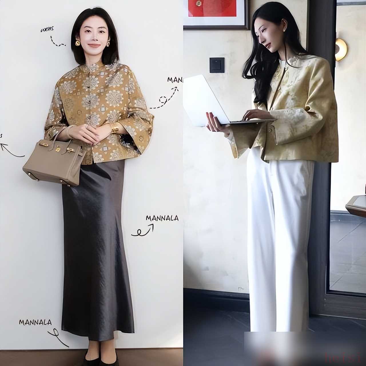 長款的連衣裙、拖地褲,剪裁里帶著點傳統(tǒng)服飾的巧思,比如盤扣、斜襟這些細節(jié),又不會太“老氣”,反而多了份東方女性的溫柔。