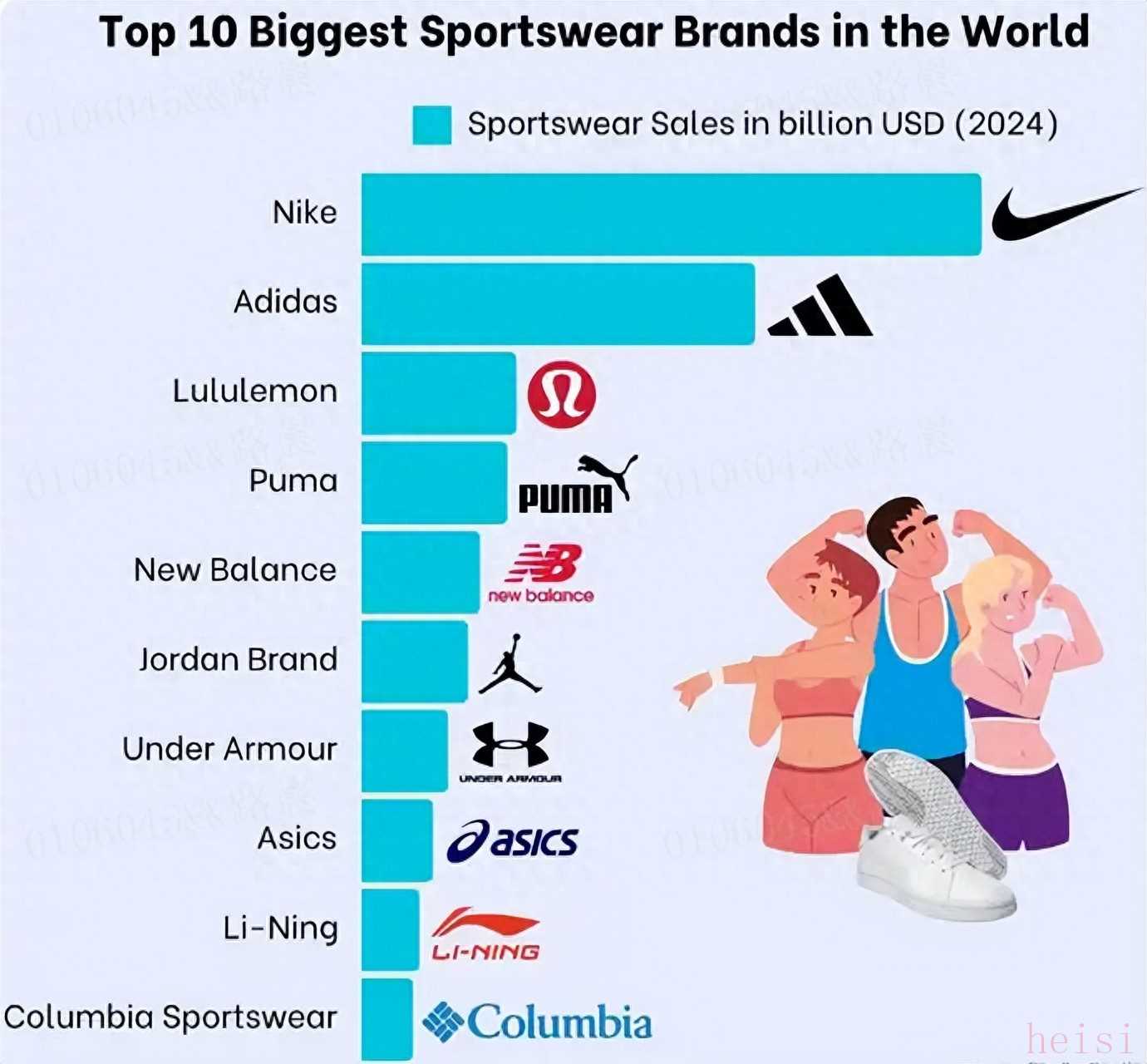 全球運動服飾市場總營收突破數(shù)千億美元,耐克以408億美元領跑,阿迪達斯、露露樂蒙緊隨其后。
