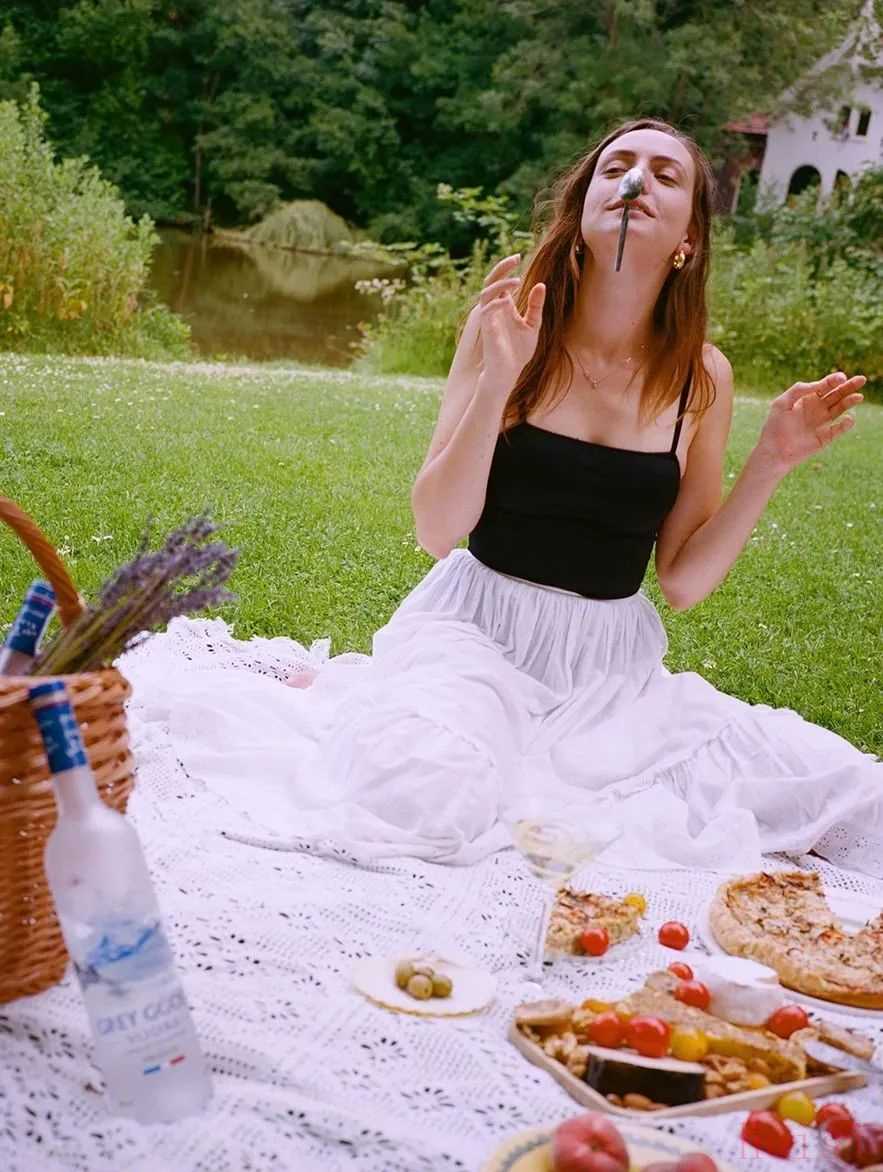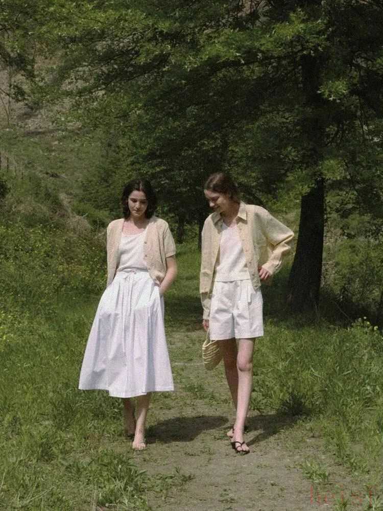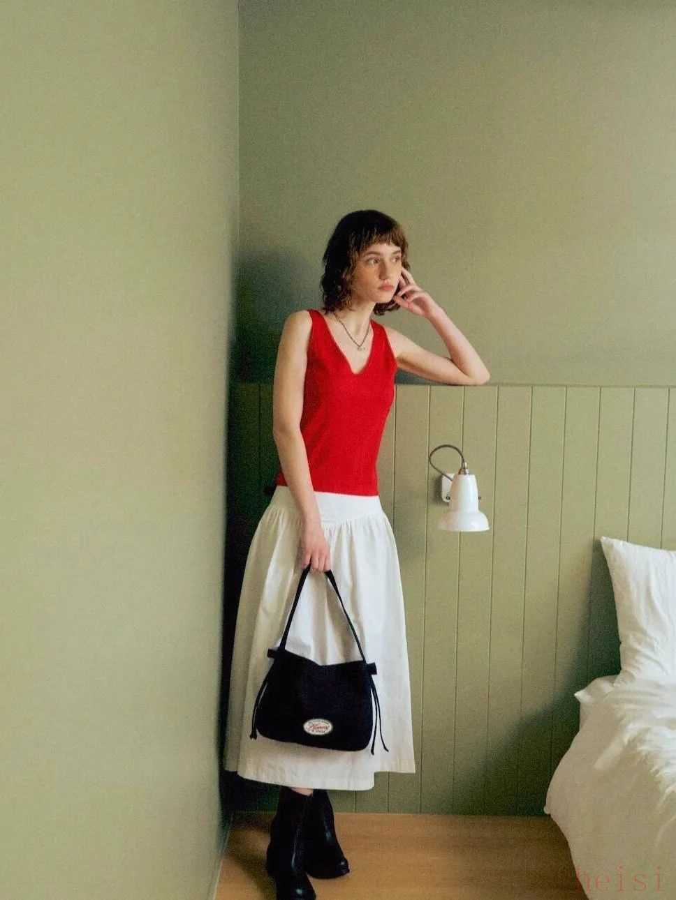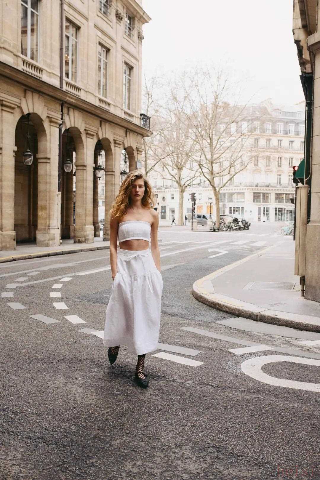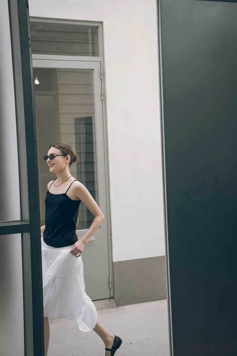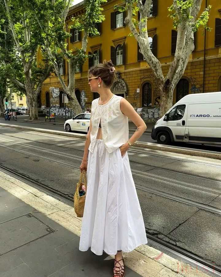 露膚度大一點(diǎn)的吊帶、馬甲都可以配小白裙,尤其適合上半身瘦的梨型身材copy。▼
