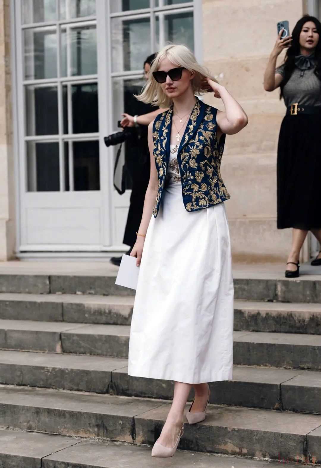 不想太正式,也可以換成下擺有一點(diǎn)荷葉邊裝飾的小白裙。Jenny Walton這張好經(jīng)典▼