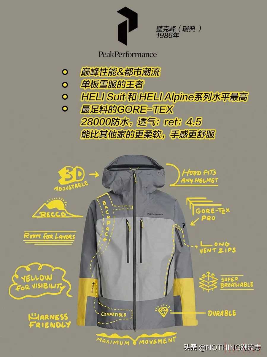 同時也是戶外滑雪,單板雪服的王者,設計獨到,HELI Suit 和 HELI Alpine系列的綜合水平最高,都是買了不會后悔的東西。