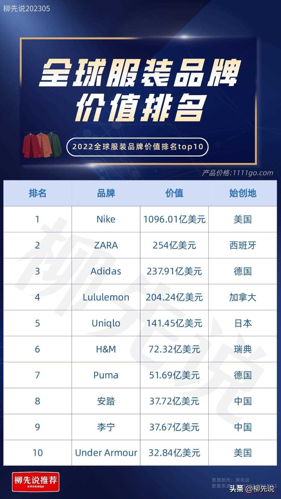 全球服裝品牌價(jià)值榜單第十名:Under Armour(安德瑪),品牌價(jià)值32.84億美元。專注于提供高性能運(yùn)動(dòng)服裝和鞋類,旨在幫助運(yùn)動(dòng)員提升其表現(xiàn)。品牌代言人包括史蒂芬·庫(kù)里、道恩·強(qiáng)森、朱婷;全球服裝品牌價(jià)值榜單第九名:李寧,品牌價(jià)值37.67億美元。國(guó)內(nèi)領(lǐng)先的體育用品品牌之一,以其運(yùn)動(dòng)鞋、服裝和配件而聞名,涵蓋了多個(gè)運(yùn)動(dòng)領(lǐng)域。李寧代言人有吉米·巴特勒、德維恩·韋德、德安吉洛·拉塞爾。