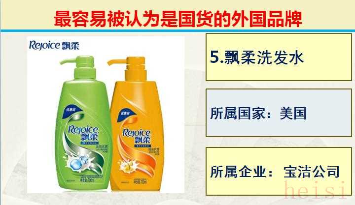 5.品牌:飄柔洗發(fā)水; 所屬國(guó)家:美國(guó); 所屬企業(yè): 寶潔公司。