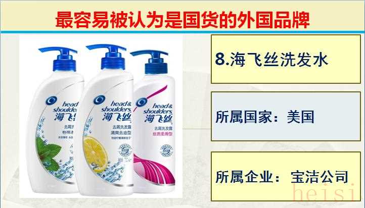 8.品牌:海飛絲洗發(fā)水; 所屬國(guó)家:美國(guó); 所屬企業(yè): 寶潔公司。