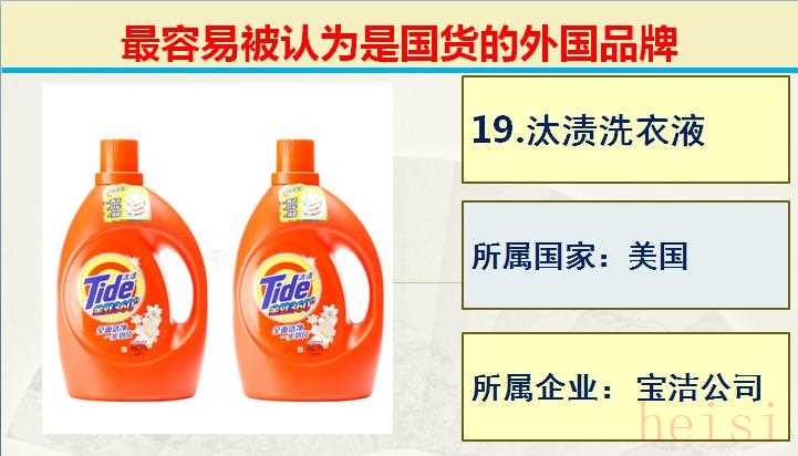 19.品牌:汰漬洗衣液; 所屬國(guó)家:美國(guó); 所屬企業(yè): 寶潔公司。