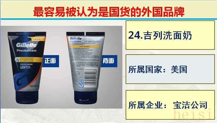 24.品牌:吉列洗面奶; 所屬國(guó)家:美國(guó); 所屬企業(yè): 寶潔公司。