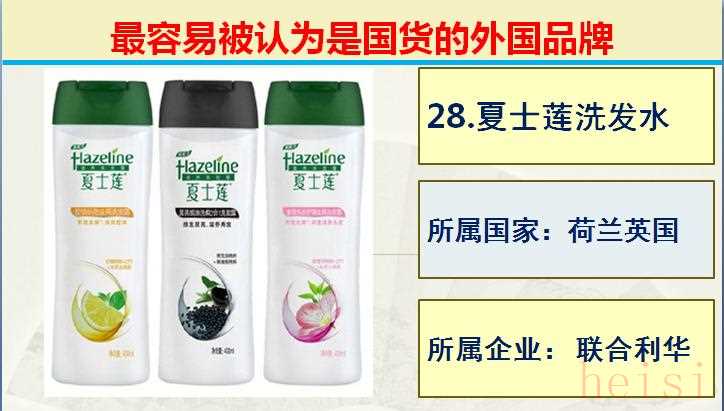 28.品牌:夏士蓮洗發(fā)水; 所屬國(guó)家:荷蘭英國(guó); 所屬企業(yè): 聯(lián)合利華。