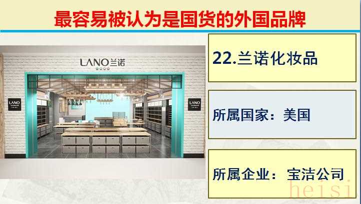 22.品牌:蘭諾化妝品; 所屬國(guó)家:美國(guó); 所屬企業(yè): 寶潔公司。