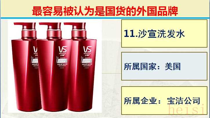 11.品牌:沙宣洗發(fā)水 ; 所屬國(guó)家:美國(guó); 所屬企業(yè): 寶潔公司。