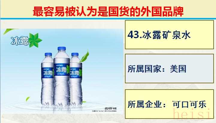 43.品牌:冰露礦泉水 ; 所屬國(guó)家:美國(guó); 所屬企業(yè):可口可樂公司。
