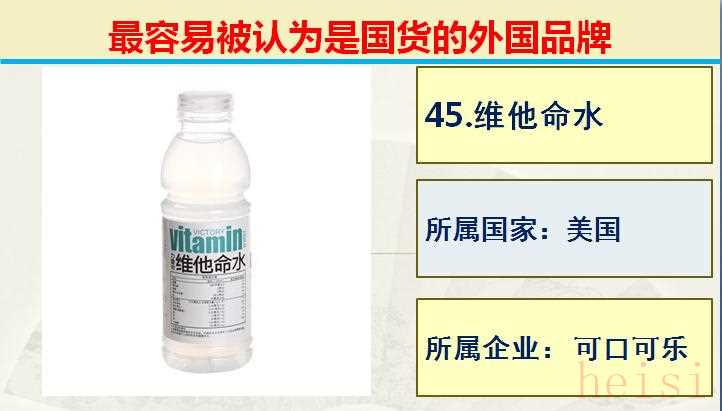 45.品牌:維他命水 ; 所屬國(guó)家:美國(guó); 所屬企業(yè):可口可樂公司。