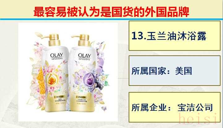 13.品牌:玉蘭油沐浴露; 所屬國(guó)家:美國(guó); 所屬企業(yè): 寶潔公司。