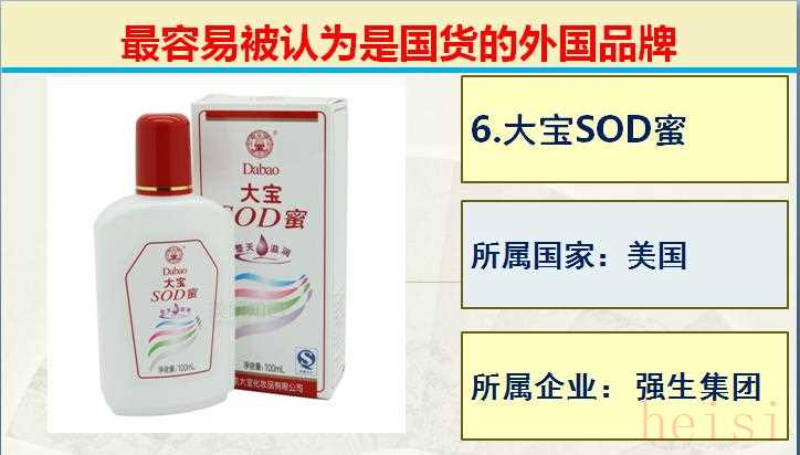 6.品牌:大寶SOD蜜; 所屬國(guó)家:美國(guó); 所屬企業(yè): 強(qiáng)生集團(tuán)。