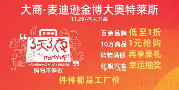 大商?麥迪遜金博大奧特萊斯晚間6點正式亮相,并開啟三天三夜購物狂歡。