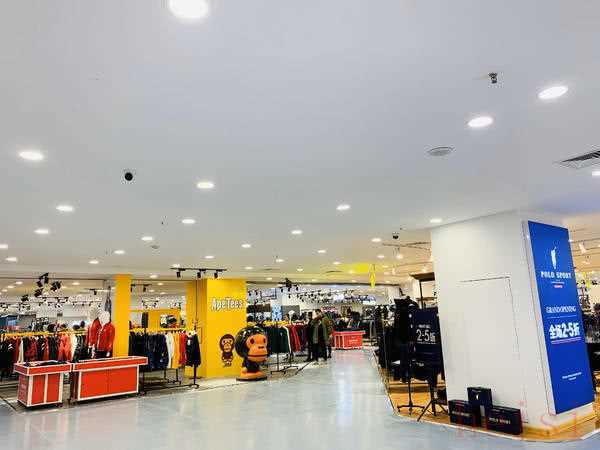 商場內(nèi)“奧萊范兒”十足,邊廳、扶梯旁、中島、直梯前、通道旁邊,都是滿眼的貨品。雖然貨品豐富,可陳列有序,道具多樣,氛圍清新。