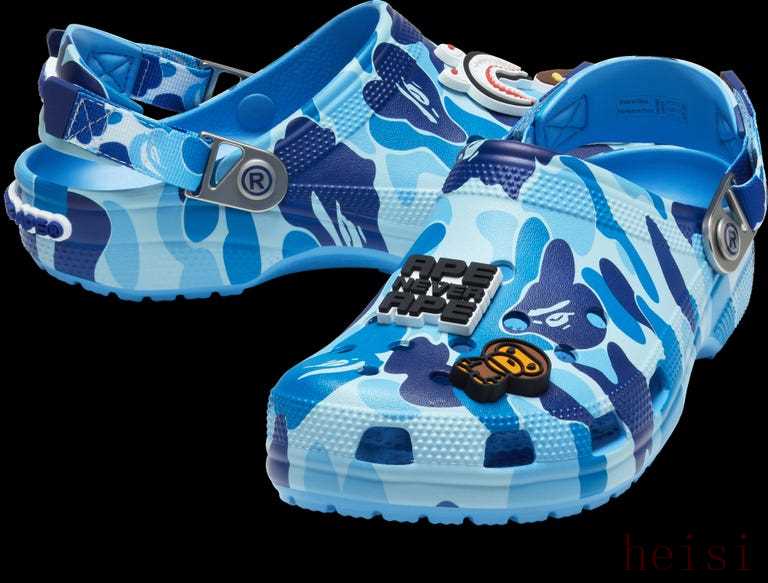 1. "設(shè)計(jì)元素融合":將BAPE的標(biāo)志性設(shè)計(jì),如猿頭圖案、迷彩圖案等,與Crocs的經(jīng)典鞋型相結(jié)合。