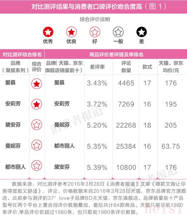 從消費(fèi)者的口碑統(tǒng)計(jì)數(shù)據(jù)來看,在對比測評中獲得優(yōu)良評價的愛慕和安莉芳,依然以較低的差評率占據(jù)口碑榜單的上游。