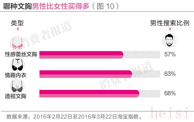 和其他文胸相比,男同胞果然更喜歡給女性買性感蕾絲文胸、情趣內(nèi)衣、透視文胸這些具備調(diào)情功能的文胸。(如圖10)