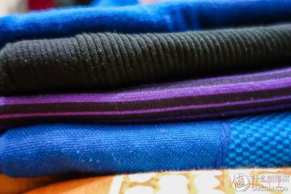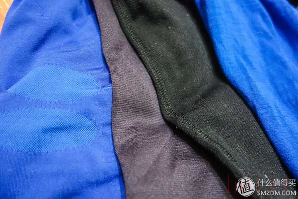 厚度和重量:總體來說,給人的感覺(并未實際上秤,人的感受可能會被物體的大小、密度而影響,有時候密度越大反而感覺越重),重量最重的是ICEBREAKER,因為是羊毛制作也不奇怪,然后是craft,這件衣服最厚,領(lǐng)子也高,Patagonia重量和craft差不多,可能稍微輕些,odlo最輕。厚度上,為了更加明顯,我折疊了2次,加上衣服正反有兩層,所以一共是8層,最厚無疑是craft、然后是odlo,后面是Patagonia、最薄的是ICEBREAKER。