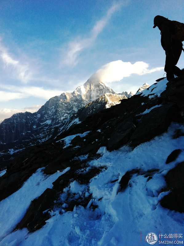 到了后半段,海拔高了,本應(yīng)該冷,但一是因為沒有什么風(fēng),還有因為路也變的陡峭,所以反而更加熱,這時候基本是敞開外套,軟殼側(cè)面有透風(fēng)的開口也全部打開,雖然熱,也出汗了,但也不是大汗淋漓的,整體衣服還是比較舒適的,包括背包背帶壓著的肩膀和后背,沒有特別悶氣的不適感覺。