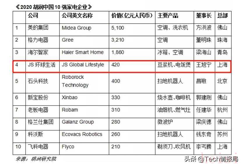 還值得一提的是,中國第四大家電巨頭已經(jīng)悄然誕生。JS環(huán)球生活以400億的市值排在了榜單第四,成為本年度家電圈的“黑馬“,而它在家電行業(yè)的地位甚至超過了tcl、海、小米等。