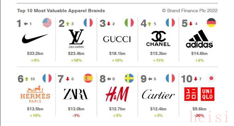2022年4月中,國際著名市場調(diào)研機構(gòu)Brand Finance發(fā)布了“2022全球最有價值50強服飾品牌榜單“(Brand Finance Apparel 50 2022)。